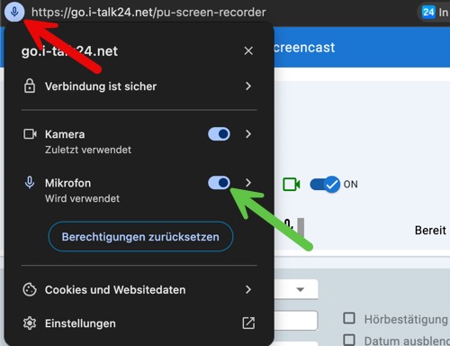1. Überprüfe, ob der Zugriff auf das Mikrofon im Browser auf "zugelassen" eingestellt ist.