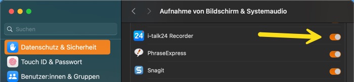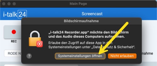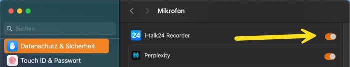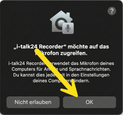 und Aktiviere dann den Zugriff für die App "i-talk24 Recorder"