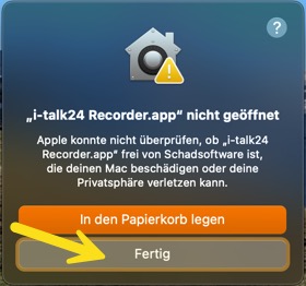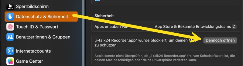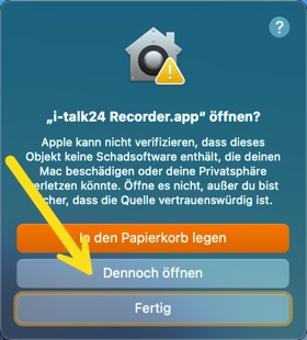 Klicke dort dann hinter dem Eintrag von "i-talk24 Recorder App" auf den Button "Dennoch öffnen".