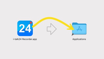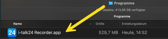 3. Ziehe dann per "Drag and Drop" das i-talk24-Icon (Die Sreenr-App) in den angezeigten Order "Applications" (Programme).